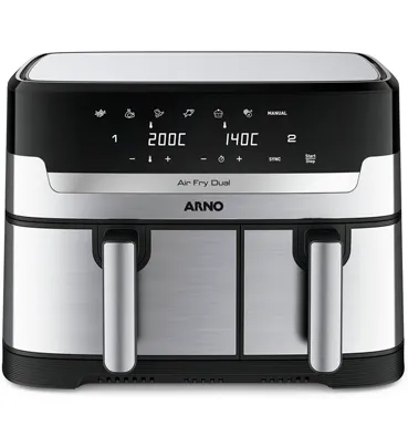Fritadeira Sem Óleo Air Fryer Arno Dual 8,3L AFD2, Cestos Duplos Independentes, Função SYNC, Painel Digital, Inox, 1800W, 110V